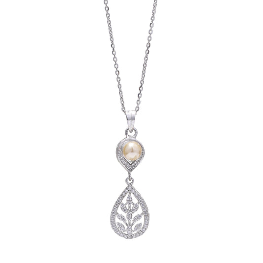 Leafy Pearl Teardrop 925 Sterling Silver Pendant