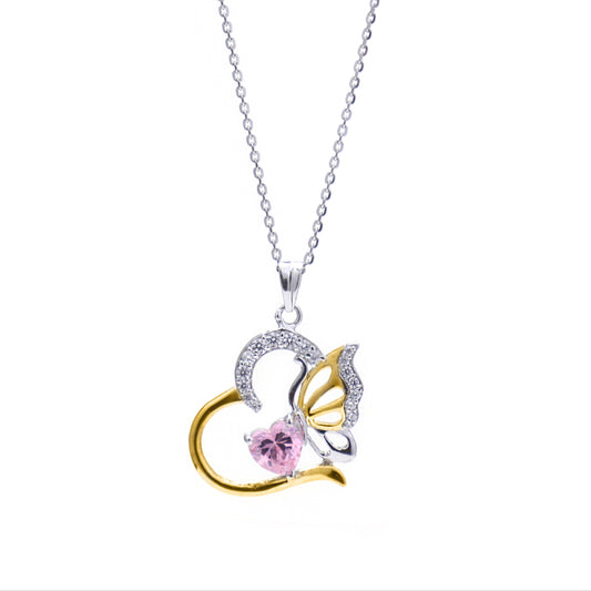Pink Glow Butterfly Charm 925 Sterling Silver Pendant