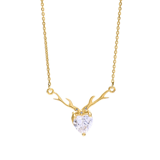 Heart Crystal Antler 925 Sterling Silver Pendant